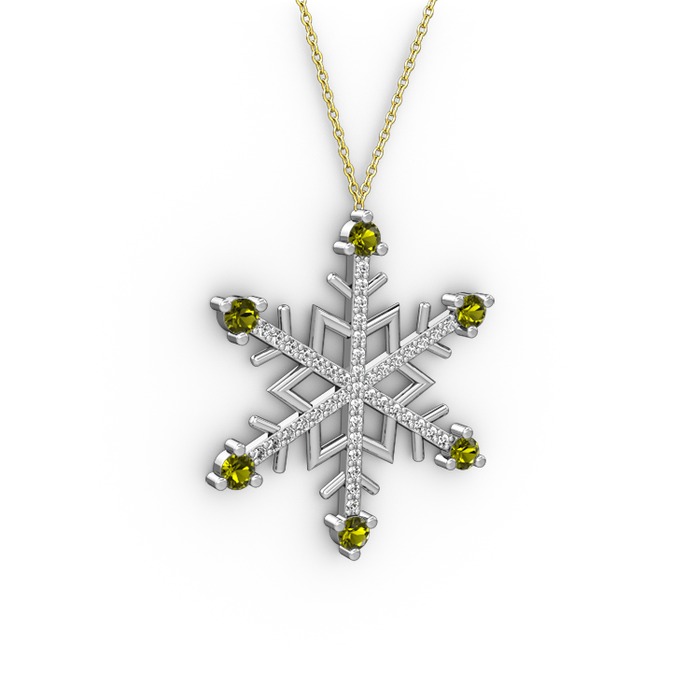 Peridot ve pırlanta 8 ayar beyaz altın kolye (0.473 karat, 40 cm altın rolo zincir)