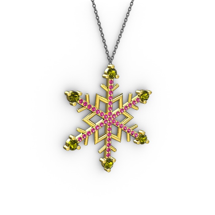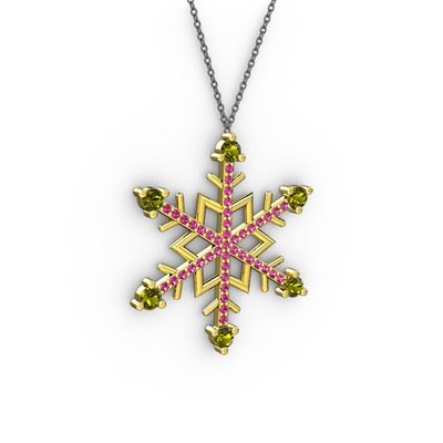 Peridot ve rodolit garnet 18 ayar altın kolye (40 cm gümüş rolo zincir)