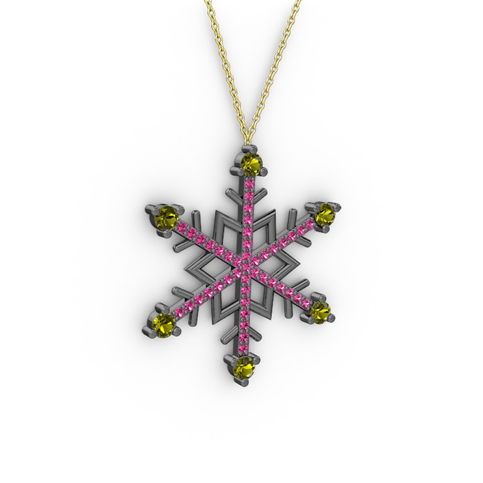 Peridot ve rodolit garnet 925 ayar siyah rodyum kaplama gümüş kolye (40 cm altın rolo zincir)