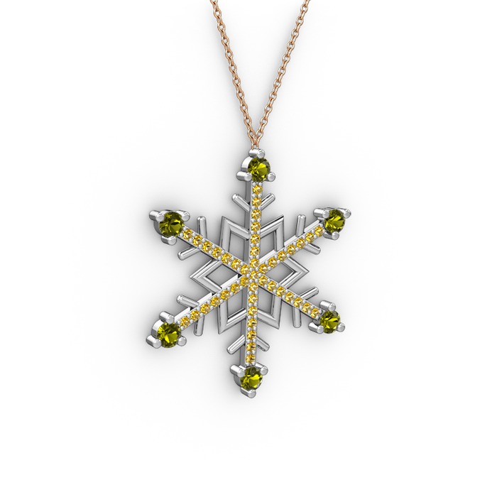 Peridot ve sitrin 14 ayar beyaz altın kolye (40 cm gümüş rolo zincir)