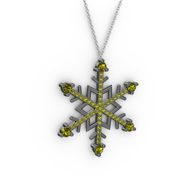 Peridot 925 ayar siyah rodyum kaplama gümüş kolye (40 cm gümüş rolo zincir)