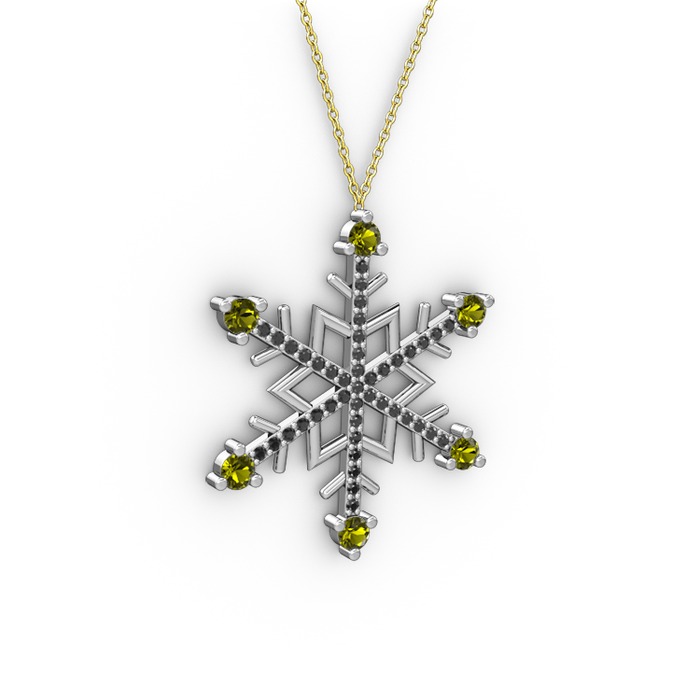 Peridot ve siyah zirkon 18 ayar beyaz altın kolye (40 cm gümüş rolo zincir)