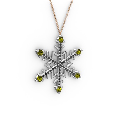 Peridot ve siyah zirkon 18 ayar beyaz altın kolye (40 cm rose altın rolo zincir)