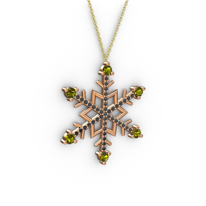 Peridot ve siyah zirkon 925 ayar rose altın kaplama gümüş kolye (40 cm gümüş rolo zincir)