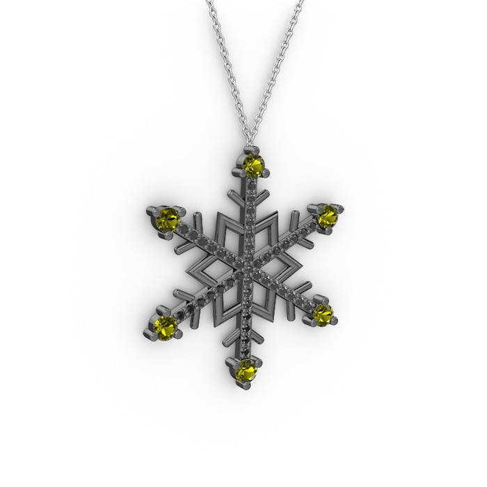 Peridot ve siyah zirkon 925 ayar siyah rodyum kaplama gümüş kolye (40 cm beyaz altın rolo zincir)