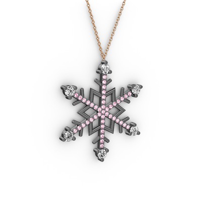 Pırlanta ve pembe kuvars 925 ayar siyah rodyum kaplama gümüş kolye (0.66 karat, 40 cm rose altın rolo zincir)