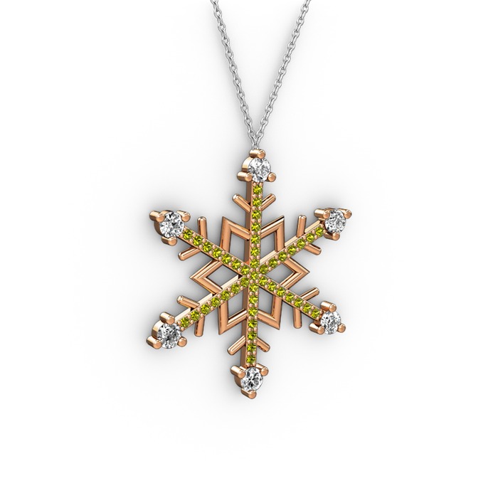 Pırlanta ve peridot 8 ayar rose altın kolye (0.66 karat, 40 cm beyaz altın rolo zincir)