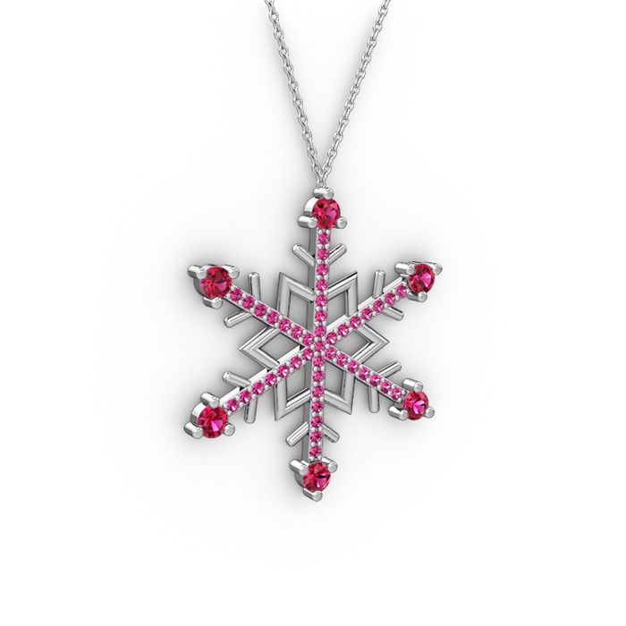 Rodolit garnet 14 ayar beyaz altın kolye (40 cm gümüş rolo zincir)