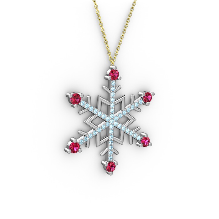 Rodolit garnet ve akuamarin 8 ayar beyaz altın kolye (40 cm altın rolo zincir)