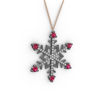 Rodolit garnet ve beyaz zirkon 925 ayar siyah rodyum kaplama gümüş kolye (40 cm gümüş rolo zincir)