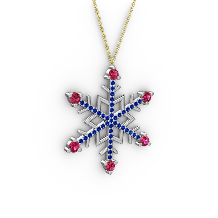 Rodolit garnet ve lab safir 8 ayar beyaz altın kolye (40 cm altın rolo zincir)