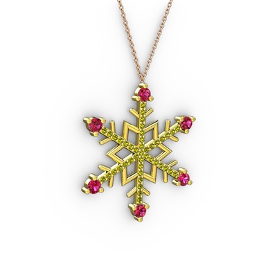 Rodolit garnet ve peridot 18 ayar altın kolye (40 cm rose altın rolo zincir)