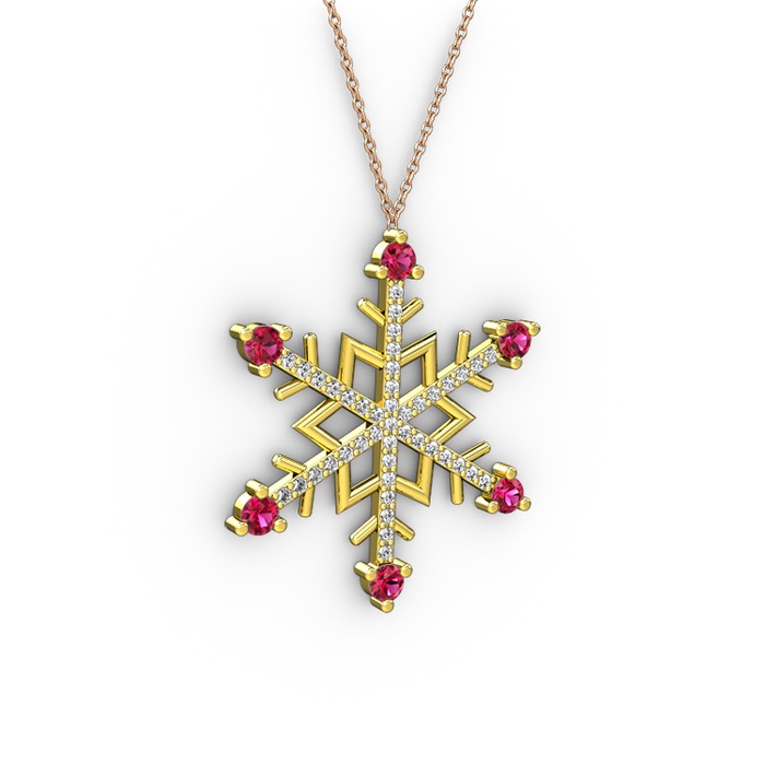 Rodolit garnet ve pırlanta 18 ayar altın kolye (0.473 karat, 40 cm gümüş rolo zincir)
