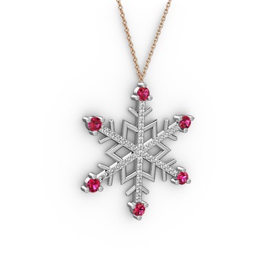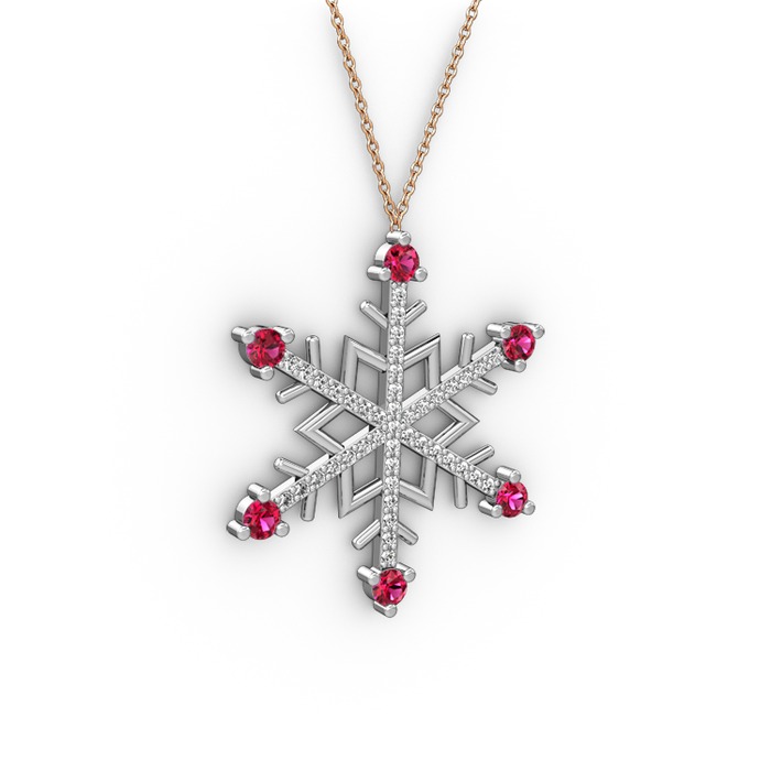Rodolit garnet ve swarovski 18 ayar beyaz altın kolye (40 cm rose altın rolo zincir)