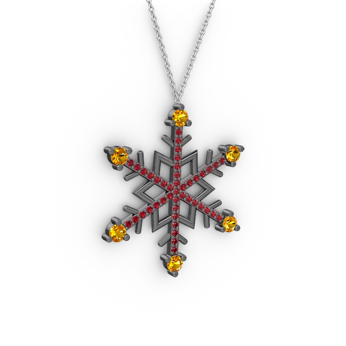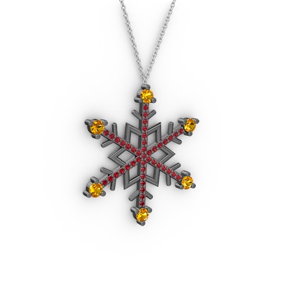 Sitrin ve garnet 925 ayar siyah rodyum kaplama gümüş kolye (40 cm beyaz altın rolo zincir)