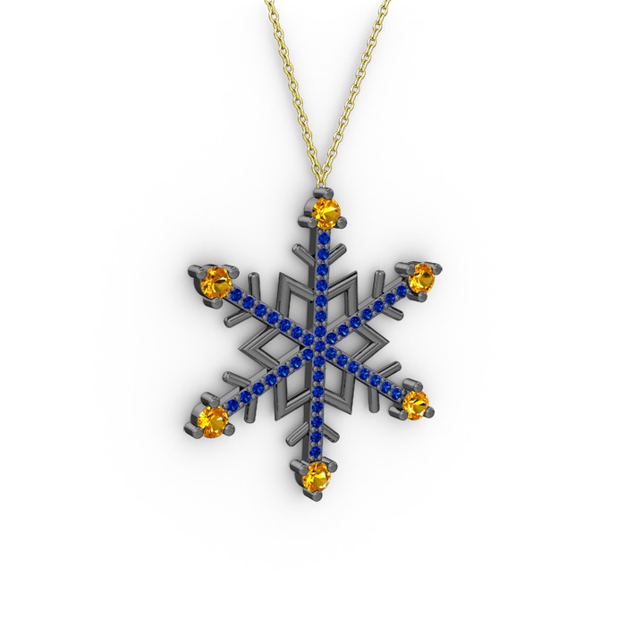 Sitrin ve lab safir 925 ayar siyah rodyum kaplama gümüş kolye (40 cm altın rolo zincir)