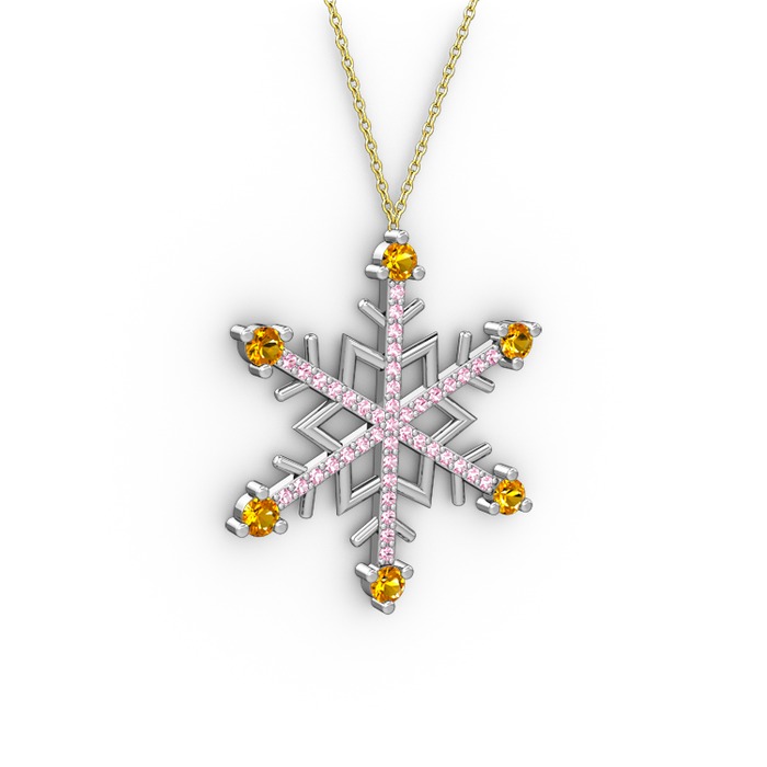Sitrin ve pembe kuvars 8 ayar beyaz altın kolye (40 cm altın rolo zincir)