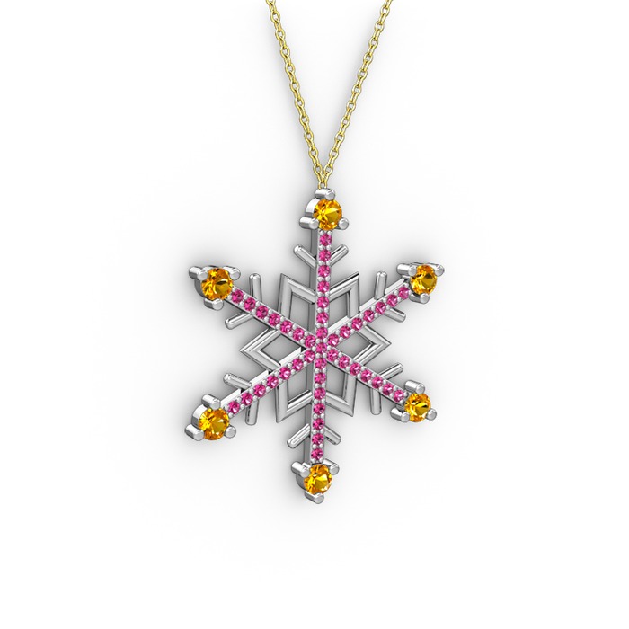 Sitrin ve rodolit garnet 925 ayar gümüş kolye (40 cm altın rolo zincir)