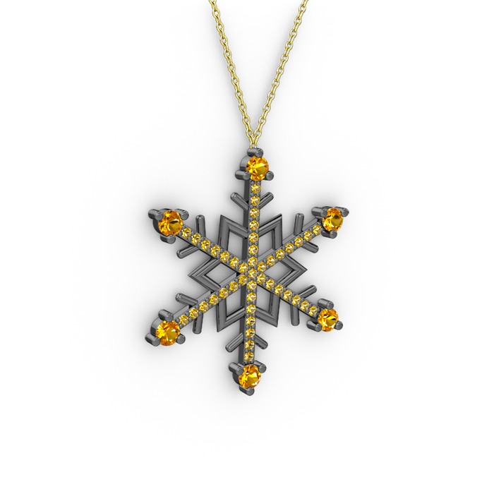 Sitrin 925 ayar siyah rodyum kaplama gümüş kolye (40 cm gümüş rolo zincir)