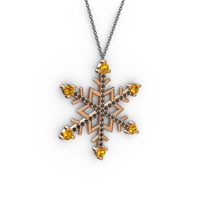 Sitrin ve siyah zirkon 8 ayar rose altın kolye (40 cm gümüş rolo zincir)
