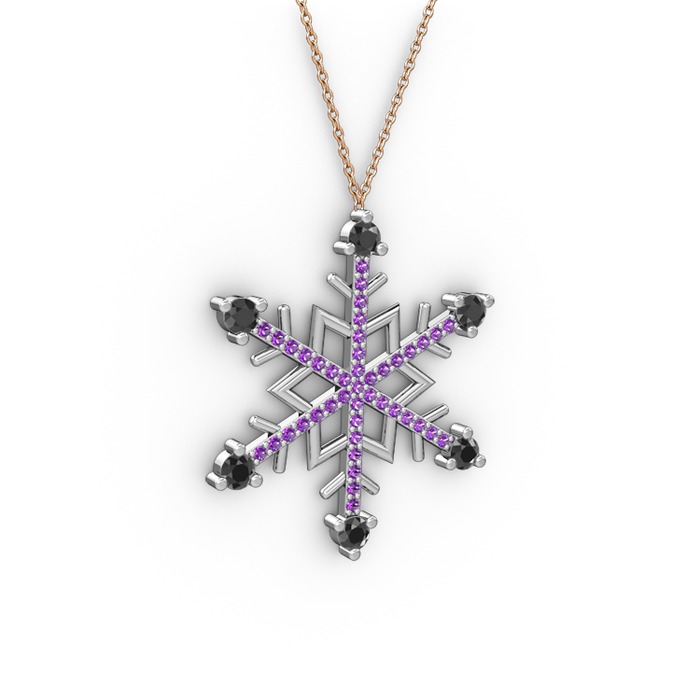 Siyah zirkon ve ametist 925 ayar gümüş kolye (40 cm rose altın rolo zincir)
