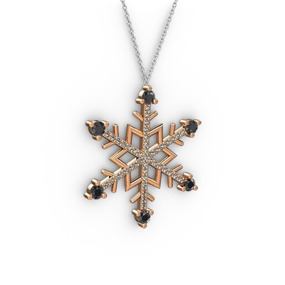 Siyah zirkon ve dumanlı kuvars 14 ayar rose altın kolye (40 cm beyaz altın rolo zincir)