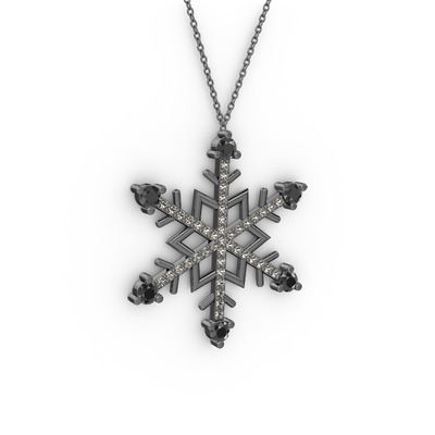 Siyah zirkon ve dumanlı kuvars 925 ayar siyah rodyum kaplama gümüş kolye (40 cm gümüş rolo zincir)