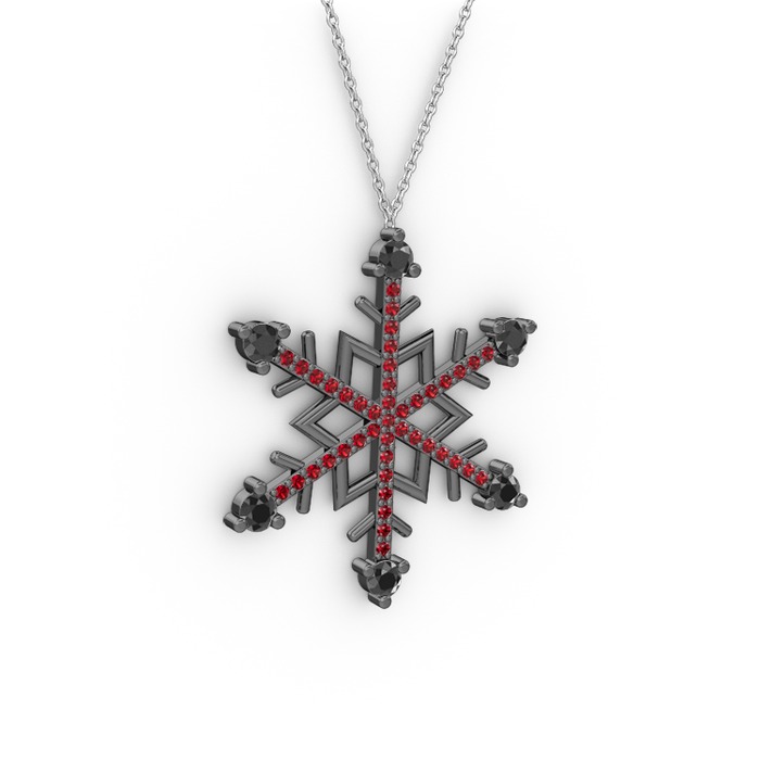 Siyah zirkon ve garnet 925 ayar siyah rodyum kaplama gümüş kolye (40 cm beyaz altın rolo zincir)