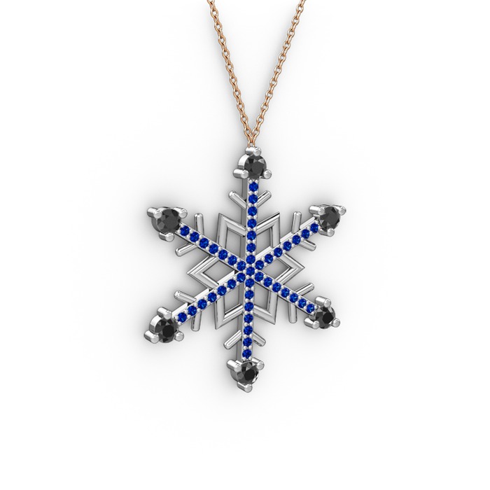 Siyah zirkon ve lab safir 14 ayar beyaz altın kolye (40 cm rose altın rolo zincir)