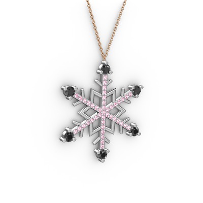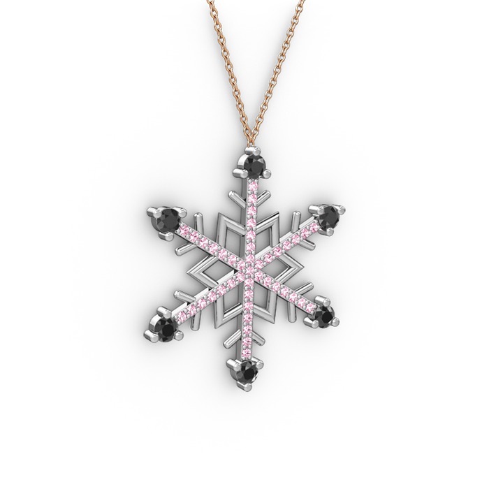 Siyah zirkon ve pembe kuvars 925 ayar gümüş kolye (40 cm rose altın rolo zincir)