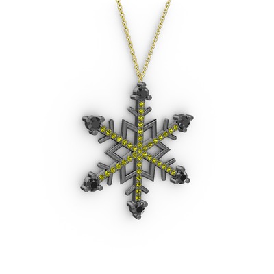 Siyah zirkon ve peridot 925 ayar siyah rodyum kaplama gümüş kolye (40 cm altın rolo zincir)