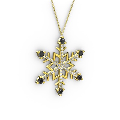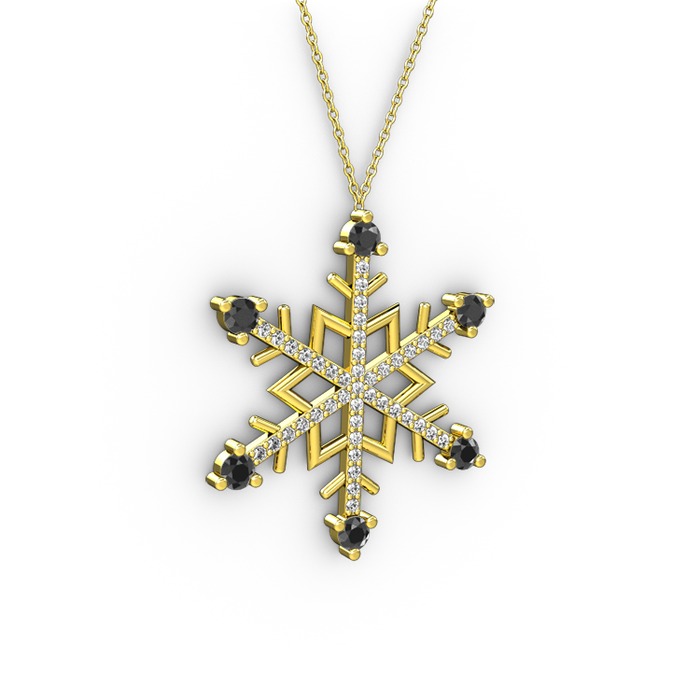 Siyah zirkon ve pırlanta 18 ayar altın kolye (0.473 karat, 40 cm gümüş rolo zincir)