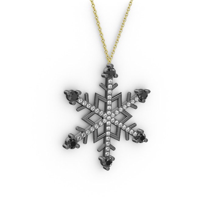 Siyah zirkon ve pırlanta 925 ayar siyah rodyum kaplama gümüş kolye (0.473 karat, 40 cm altın rolo zincir)
