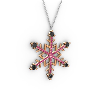 Siyah zirkon ve rodolit garnet 925 ayar rose altın kaplama gümüş kolye (40 cm beyaz altın rolo zincir)