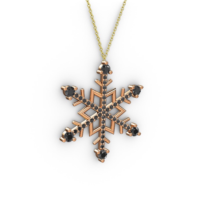 Siyah zirkon 925 ayar rose altın kaplama gümüş kolye (40 cm altın rolo zincir)