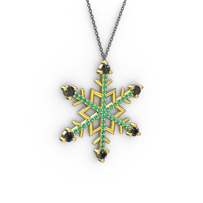 Siyah zirkon ve yeşil kuvars 925 ayar altın kaplama gümüş kolye (40 cm gümüş rolo zincir)