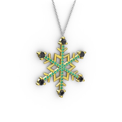 Siyah zirkon ve yeşil kuvars 925 ayar altın kaplama gümüş kolye (40 cm gümüş rolo zincir)