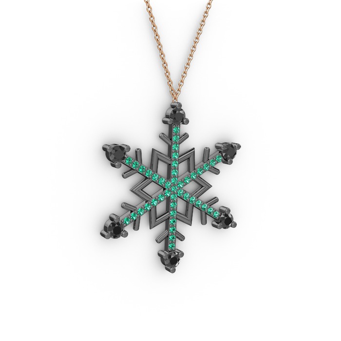 Siyah zirkon ve yeşil kuvars 925 ayar siyah rodyum kaplama gümüş kolye (40 cm rose altın rolo zincir)