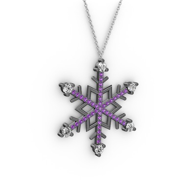 Swarovski ve ametist 925 ayar siyah rodyum kaplama gümüş kolye (40 cm beyaz altın rolo zincir)
