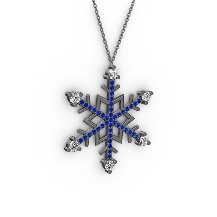 Swarovski ve lab safir 925 ayar siyah rodyum kaplama gümüş kolye (40 cm gümüş rolo zincir)
