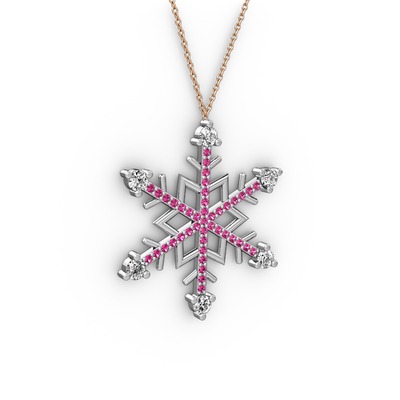 Swarovski ve rodolit garnet 14 ayar beyaz altın kolye (40 cm rose altın rolo zincir)