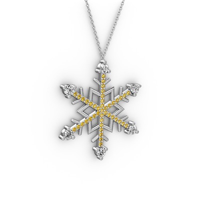 Swarovski ve sitrin 14 ayar beyaz altın kolye (40 cm beyaz altın rolo zincir)