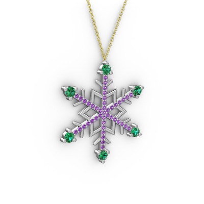 Yeşil kuvars ve ametist 18 ayar beyaz altın kolye (40 cm altın rolo zincir)