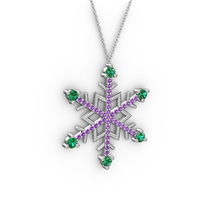 Yeşil kuvars ve ametist 18 ayar beyaz altın kolye (40 cm beyaz altın rolo zincir)