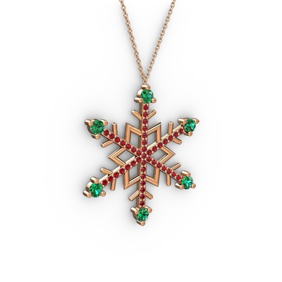 Yeşil kuvars ve garnet 925 ayar rose altın kaplama gümüş kolye (40 cm rose altın rolo zincir)
