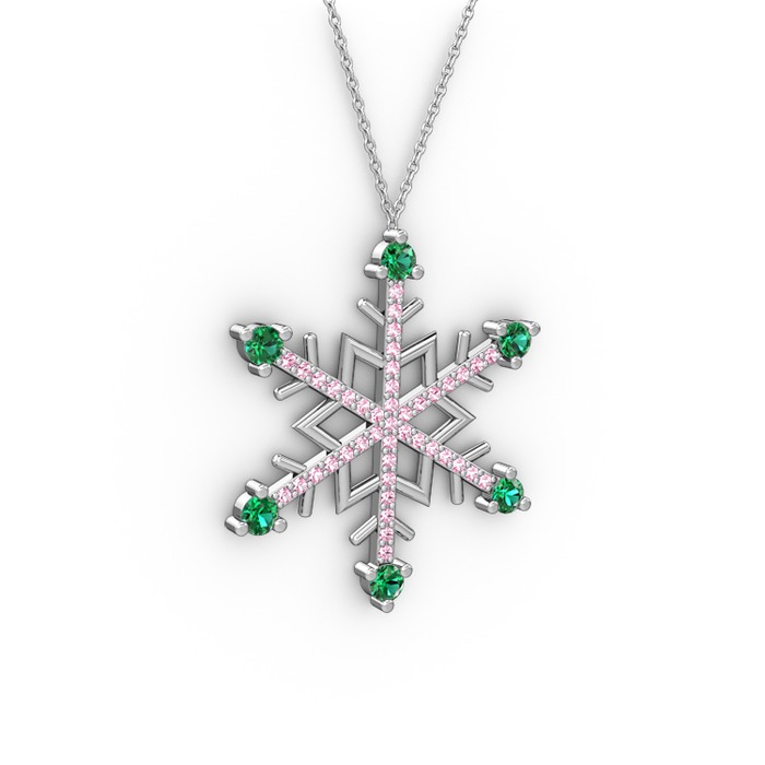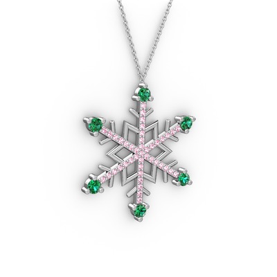 Yeşil kuvars ve pembe kuvars 14 ayar beyaz altın kolye (40 cm beyaz altın rolo zincir)