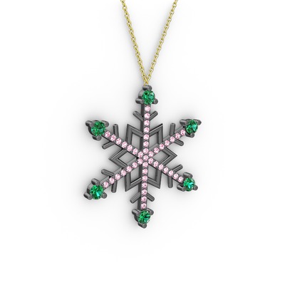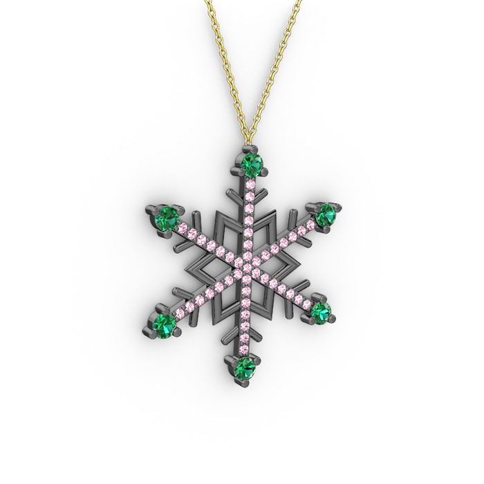 Yeşil kuvars ve pembe kuvars 925 ayar siyah rodyum kaplama gümüş kolye (40 cm altın rolo zincir)