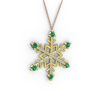 Yeşil kuvars ve pırlanta 14 ayar altın kolye (0.473 karat, 40 cm gümüş rolo zincir)