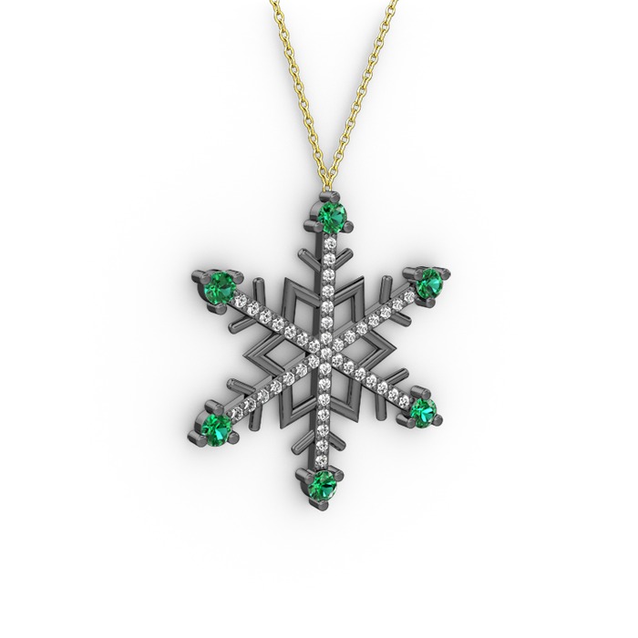 Yeşil kuvars ve pırlanta 925 ayar siyah rodyum kaplama gümüş kolye (0.473 karat, 40 cm altın rolo zincir)
