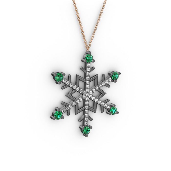 Yeşil kuvars ve pırlanta 925 ayar siyah rodyum kaplama gümüş kolye (0.473 karat, 40 cm gümüş rolo zincir)